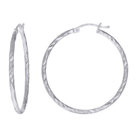 925 Sterling Silver Womens Diamond-cut 2mm x 35mm Hoop Earrings