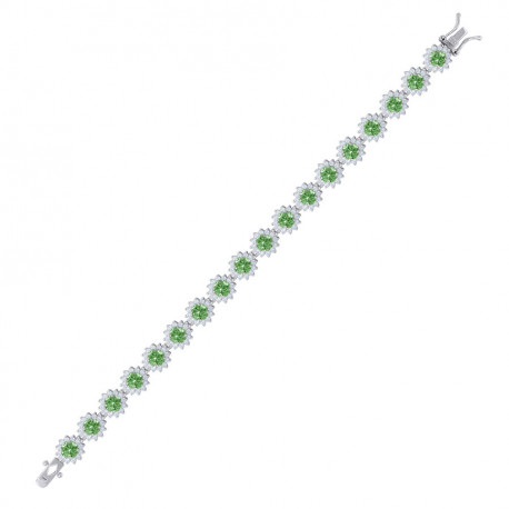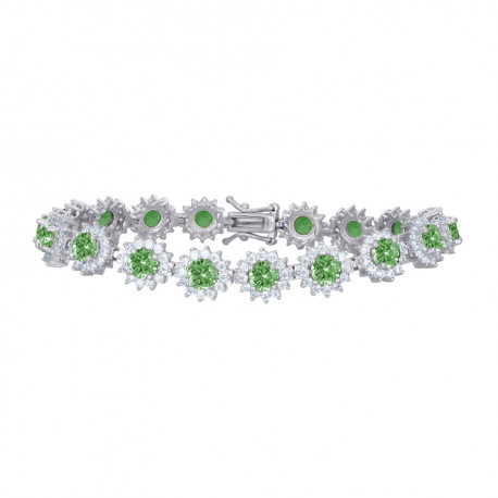 925 Sterling Silver Womens Green White Cubic-Zirconia Flower Link Fashion Bracelet Size 7.5 Inche