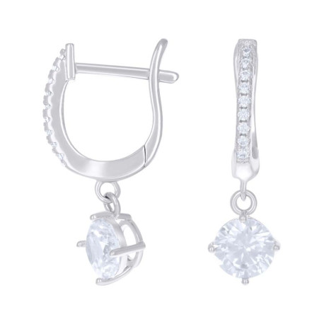 925 Sterling Silver Womens Cubic-Zirconia Dangle Hoop Earrings