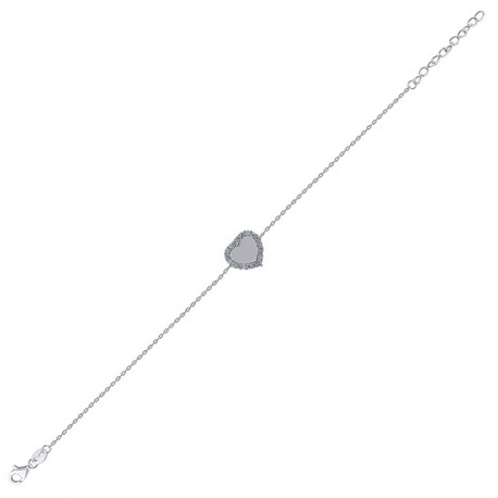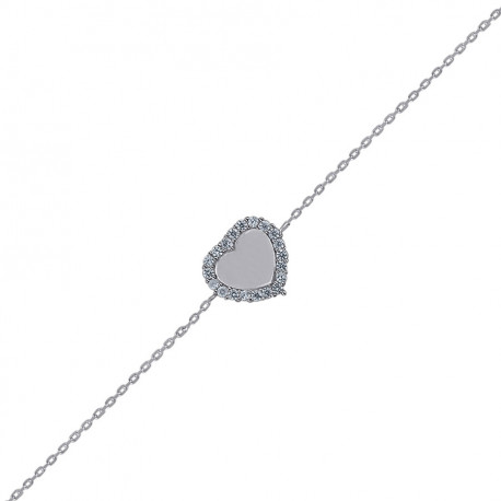 925 Sterling Silver Womens Cubic Zirconia Rolo Link Heart Bracelet