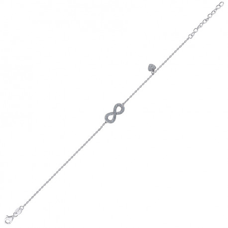925 Sterling Silver Womens Cubic Zirconia Rolo Link Infinity With Heart Charm Bracelet