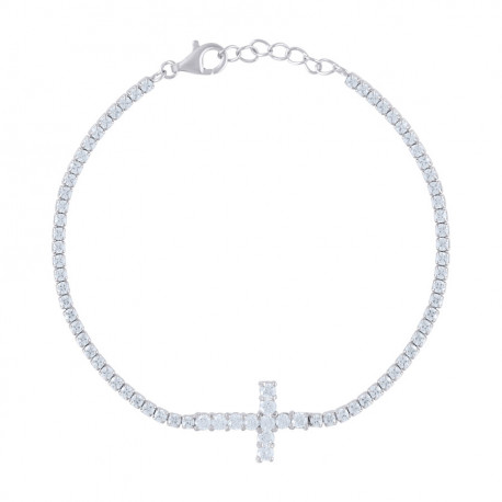 925 Sterling Silver Womens Cubic Zirconia Fancy Cross Bracelet