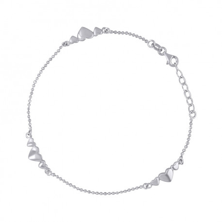 925 Sterling Silver Womens Moon Cut Hearts Link Anklet