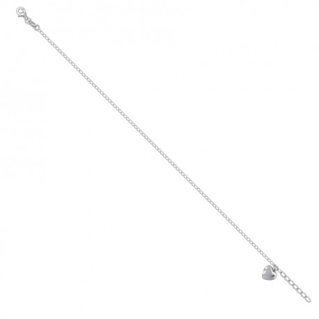 925 Sterling Silver Womens Cubic-Zirconia Rolo Link Heart Charms Anklet