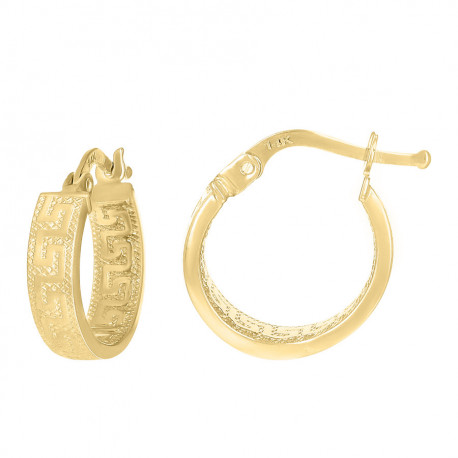 14kt Yellow Gold Womens Greek Key Square Tube Hoop Earrings
