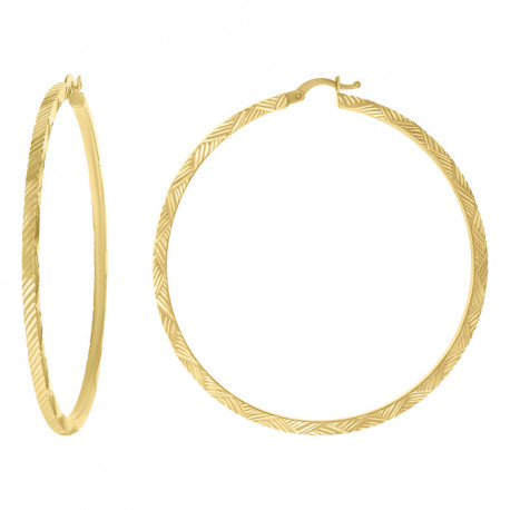 14kt Yellow Gold Womens 60mm x 2mm Diamond-Cut Hoop Earrings
