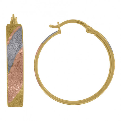 14kt Tri-color Gold Womens Textured Hinged Hoop Earrings 25mm