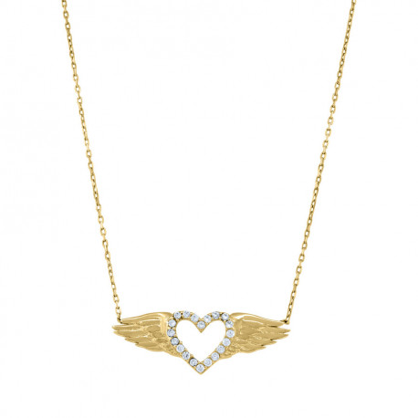 14kt Yellow Gold Womens Cubic Zirconia Diamond-cut Heart With Angel Wings Necklace Size 18 Inches