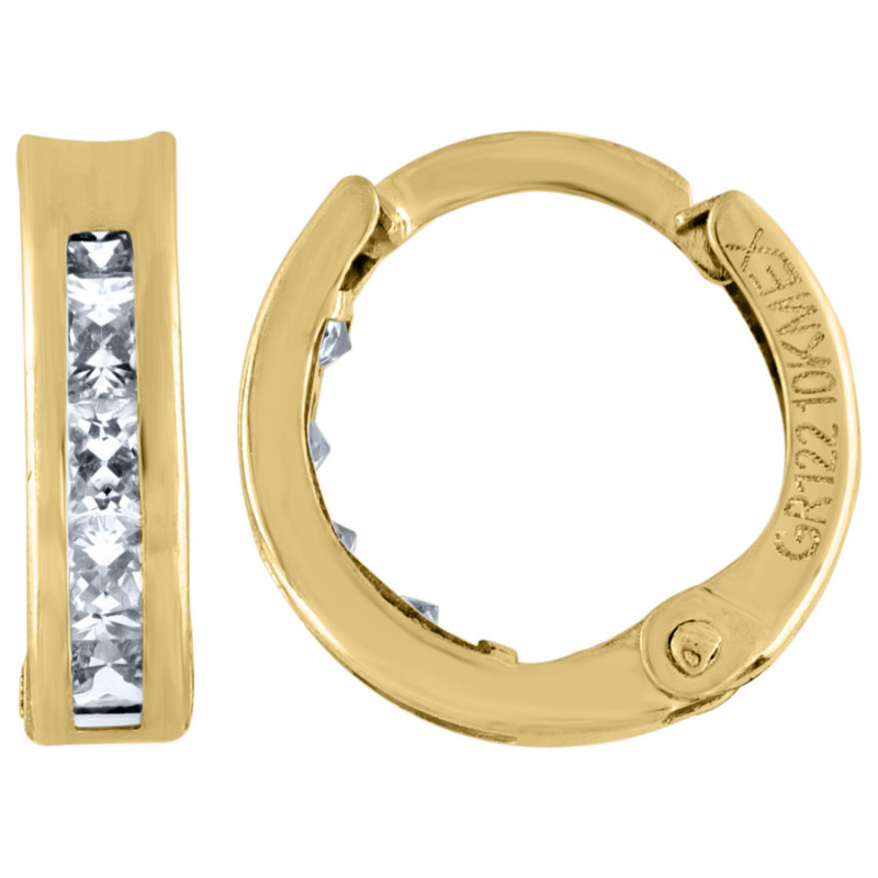 14kt Yellow Gold Womens Princess-cut Cubic Zirconia Single Row Huggie Hoop Earrings