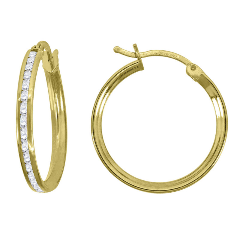 14kt Yellow Gold Unisex Single Row CZ Huggie Hoop 20mm x 2mm Earrings