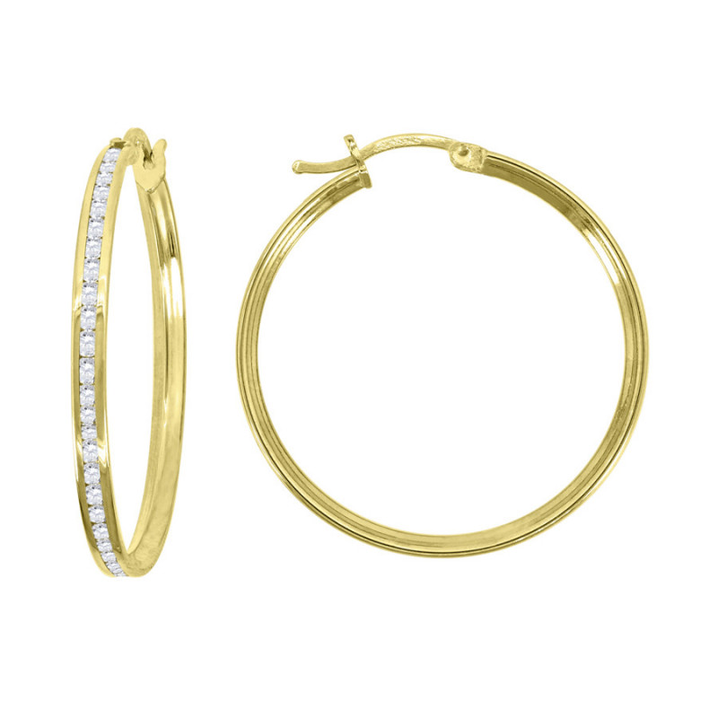 14kt Yellow Gold Womens Single Row CZ Huggie Hoop 2mm x 2mm Earrings