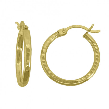 14kt Yellow Gold Womens Hammered Huggie Hoop 21mm x 2.5mm Earrings