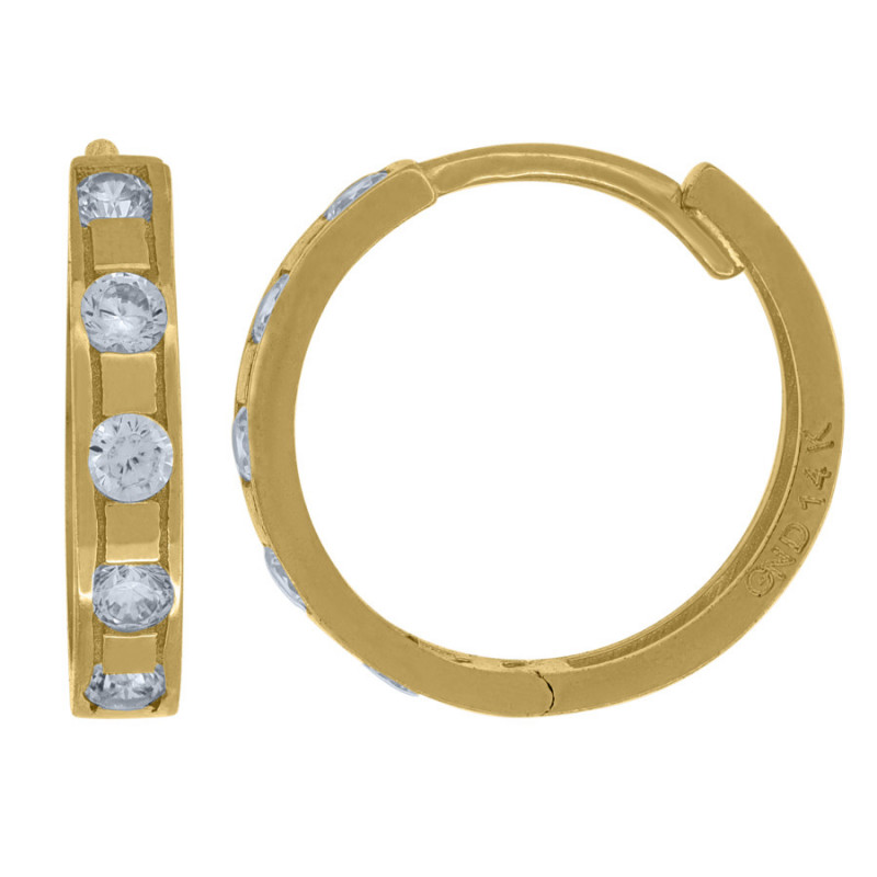 14kt Yellow Gold Womens Cubic Zirconia Huggie Hoop Earrings