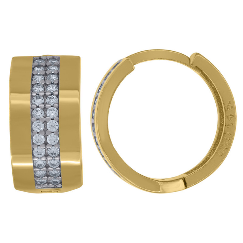 14kt Two-tone Gold Womens Cubic Zirconia Greek Key Huggie Hoop Earrings