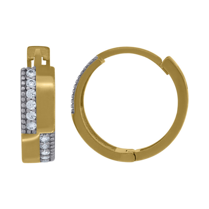 14kt Two-tone Gold Womens Cubic Zirconia Polished Finish Huggie Hoop Earrings