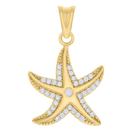14kt Yellow Gold Unisex Cubic-Zirconia Star Fish Ocean Charm Pendant
