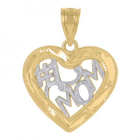 14kt Gold Womens Two-tone Diamond-cut No.1 Mom Mother Heart Pendant Charm