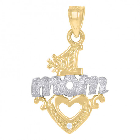 14kt Gold Womens Two-tone CZ No.1 Mom Heart Pendant Charm
