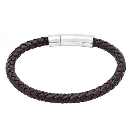 Stainless Steel Mens Unisex Braided Brown Leather With Magnetic Clasps Bracelet