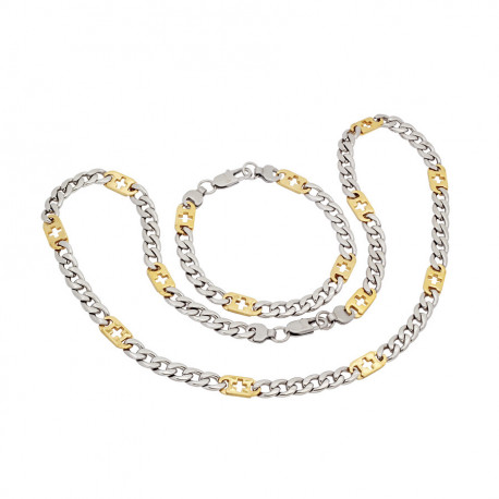 Stainless Steel Mens Two-Tone Cuban Link Bracelet/Necklace Set