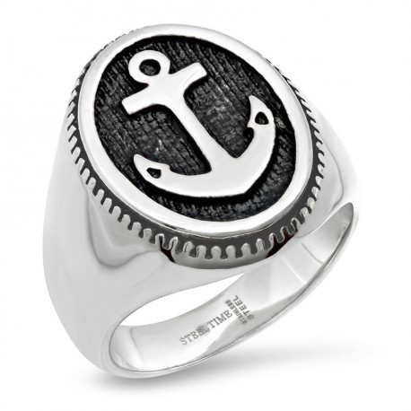 Stainless Steel Mens Anchor Oval Head Sizes 9 - 12 Comfort-fit Fashion Band Ring