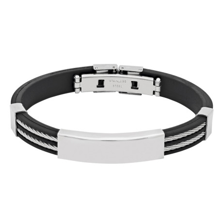 Stainless Steel Mens Black Rubber Double Cable Rope Inlay Bracelet?