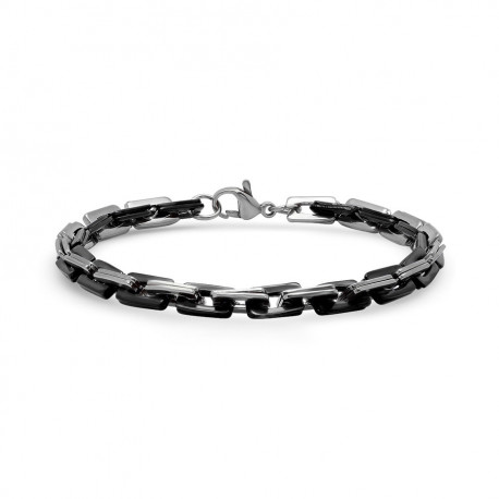 Stainless Steel Mens Black -Tone Link Fashion Bracelet