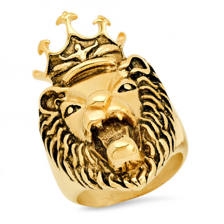 Stainless Steel Mens Yellow Black-Tone Leo/Lion Head Wild Life/Zodiac Sign Fashion Ring