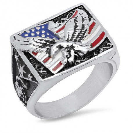 Stainless Steel Mens Black -Tone American Eagle Fashion Ring