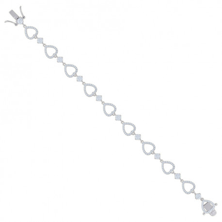 925 Sterling Silver Womens Cubic Zirconia Link Heart Bracelet