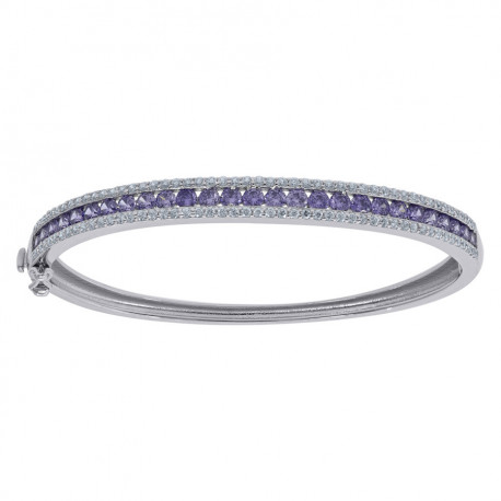 925 Sterling Silver Womens Purple & White Cubic Zirconia 3-Rows Bangle