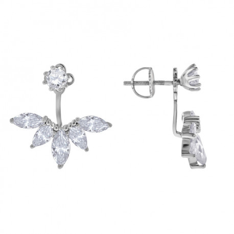 925 Sterling Silver Womens Marquise Cubic Zirconia Leaf Motif Earring Jacket With Studs