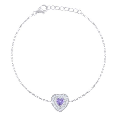 925 Sterling Silver Womens Heart Round Cubic-Zirconia Heart Charm Bracelet Size 7.75 Inches