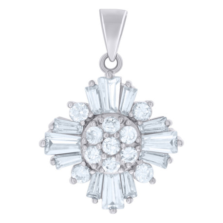 925 Sterling Silver Womens Baguette Round Cubic-Zirconia Fashion Charm Pendant