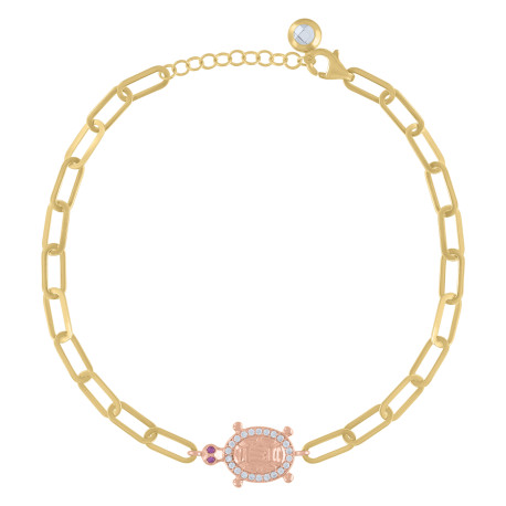 10kt Two-tone Gold Womens Purple Cubic-Zirconia Turtle Animal Charm Bracelet Size 8 Inches