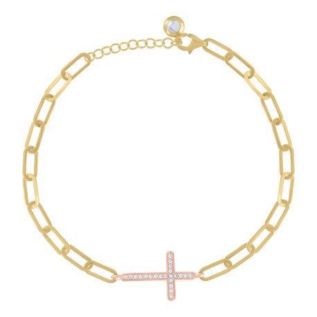 10kt Two-tone Gold Womens Cubic-Zirconia Cross Religious Charm Bracelet Size 8 Inches