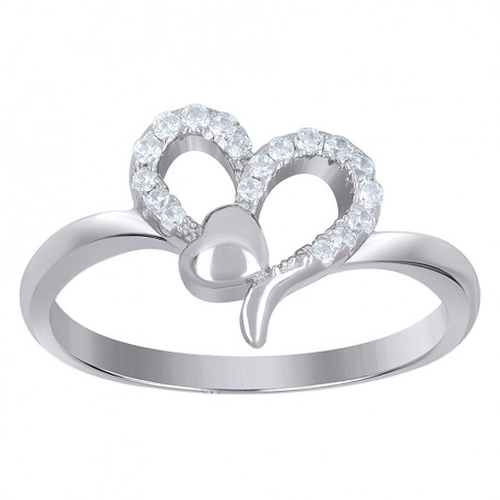 925 Sterling Silver Womens Cubic-Zirconia Heart Love Ring Size 6 To 9