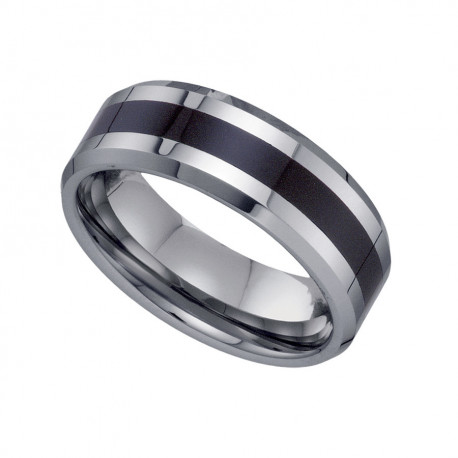 Tungsten Black Inlay Mens Comfort-fit 8mm Sizes 7 - 14 Wedding Band with Beveled Edges
