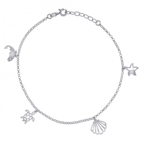 925 Sterling Silver Womens Ocean Life Charms Anklet Size 10 Inches