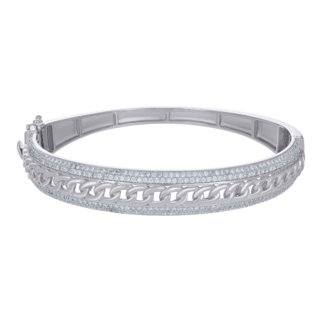 925 Sterling Silver Womens Cubic-Zirconia Cuban Link Fashion Bangle
