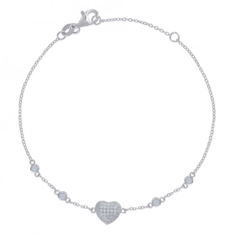 925 Sterling Silver Womens Cubic-Zirconia Heart Charm Bracelet