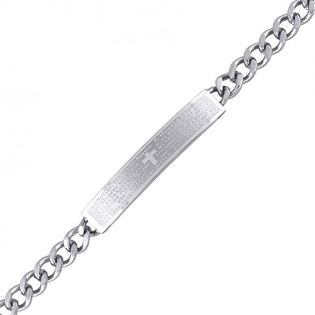 Stainless Steel Mens English Lords Prayer Cuban Link 8mm Bracelet-8inch