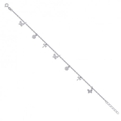 925 Sterling Silver Womens Butterfly Flower Dragonfly Fashion Charms Anklet