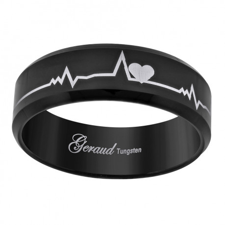 Tungsten Black Heart Beat EKG Mens Comfort-fit 8mm Sizes 7 - 14 Wedding Band