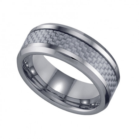 Tungsten Grey Carbon Fiber Inlay Comfort-fit 8mm Sizes 7 - 14 Wedding Band